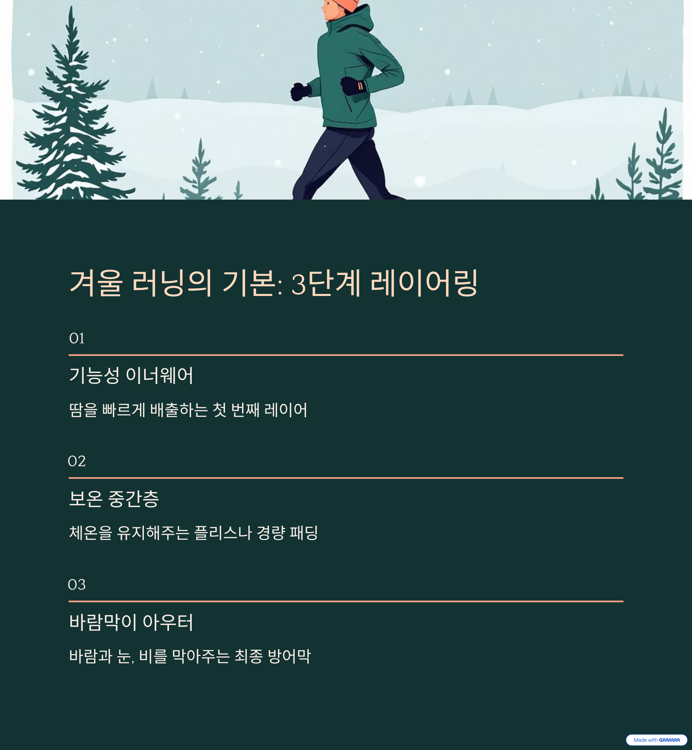겨울 러닝의 기본은 레이어링입니다.