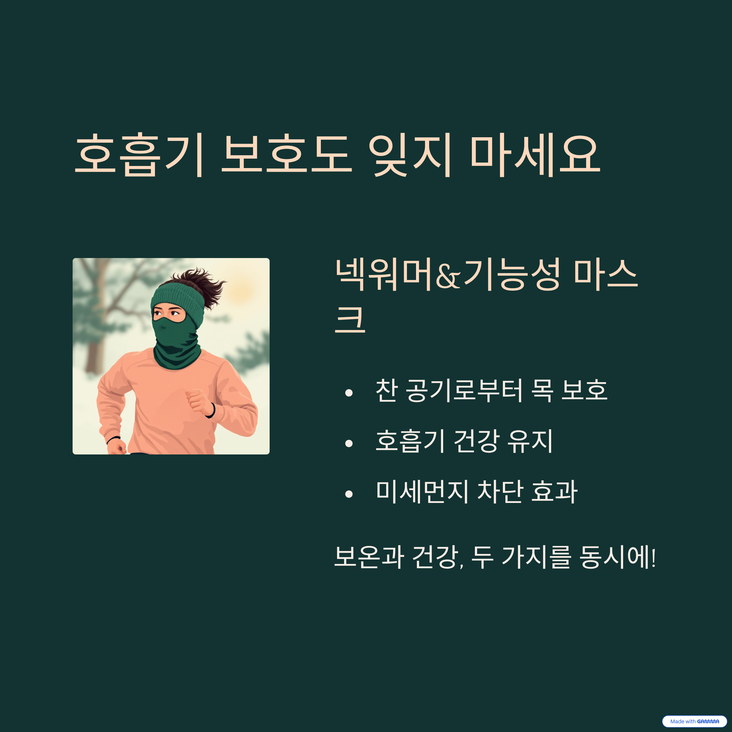 보온뿐 아니라 미세먼지가 많은 날에도 유용하죠.